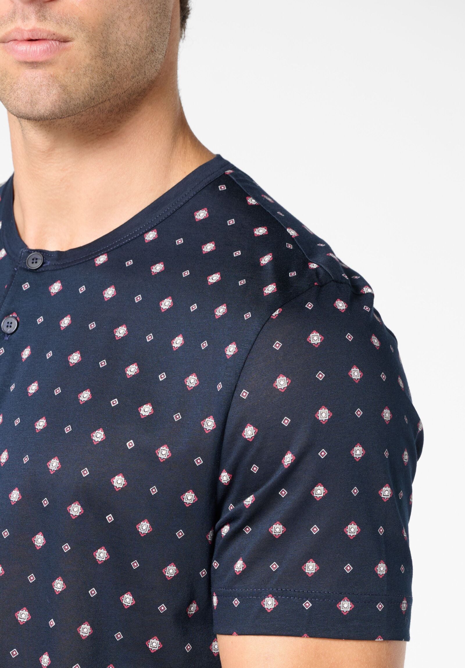 Perofil's short-sleeved men's pyjamas are the ideal choice for the warmer months, thanks to the superior quality of the 100% mercerised cotton jersey, which is soft, lightweight and highly breathable. Perofil's exclusive prints enhance the design with a touch of understated elegance, perfect for everyday relaxation. The T-shirt guarantees comfort and freedom of movement, while the practical and functional Bermuda shorts feature a back pocket, a detail that combines style and utility. The classic fit ensures a comfortable line suitable for all body types, offering a feeling of natural well-being during rest. Designed for men looking for high-quality cotton pyjamas, this short Perofil model combines fine materials, attention to detail and Italian design.