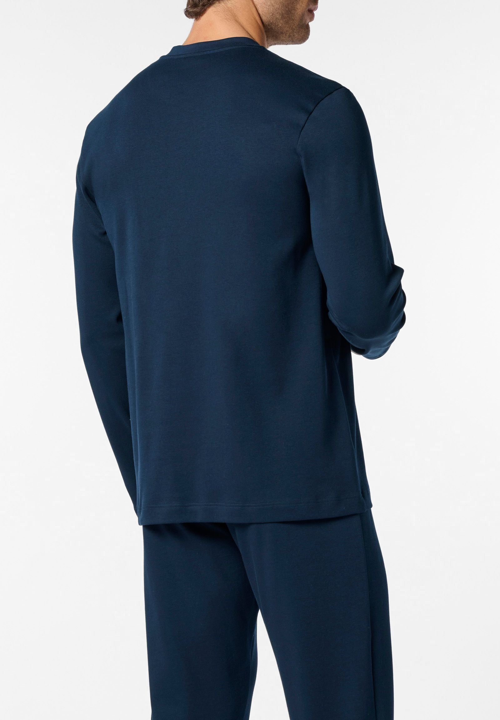 Long pyjamas in soft and warm winter cotton with a traditional Henley opening. The top features refined striped flannel inserts on the inner collar and neck lining, adding a touch of style to a timeless design. Comfortable classic fit, ideal for colder days or relaxing evenings at home. Delivered in an elegant box, making it perfect as a gift idea as well.