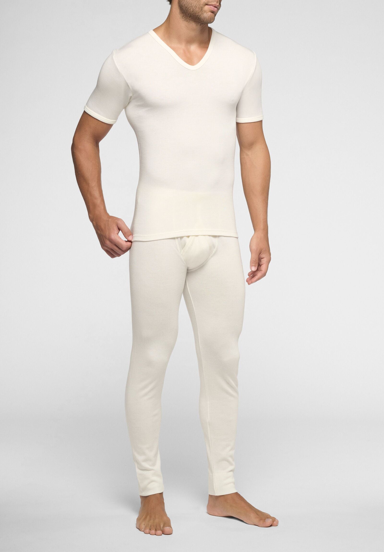 Precious, soft and enveloping is the warmest V-neck t-shirt, ideal for the winter season, for a pleasant feeling of warmth and comfort. Pure cotton in contact with the skin and outside fine wool, light and soft, with a continuous silk thread, bright and valuable. To make you feel wrapped in a soft caress, protected, at ease. No seams on the sides.