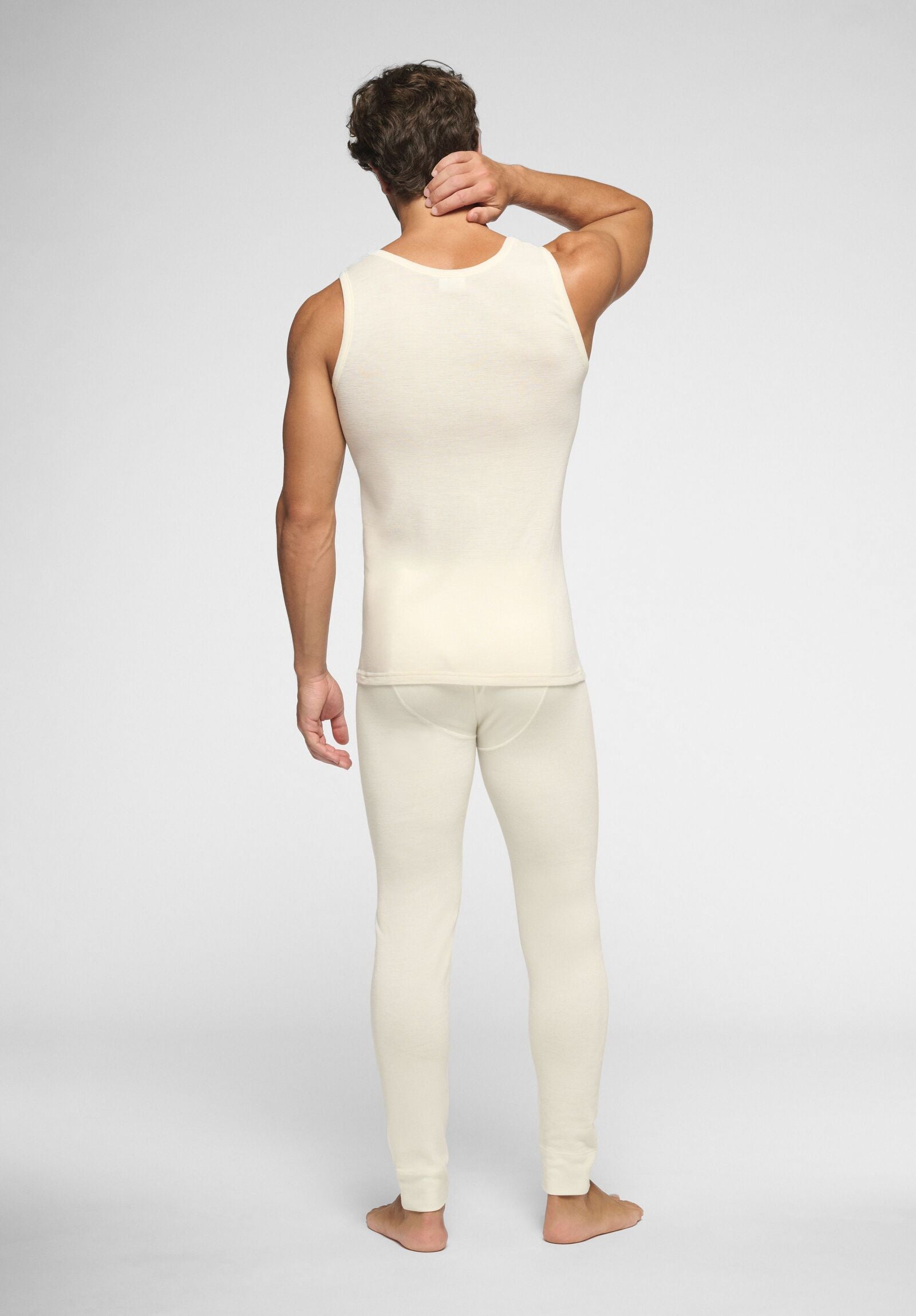 Canotta spalla larga da uomo, modello Pointer, realizzata in lana e seta. La lana che utilizziamo è antitarmica, antinfeltrente, irrestringibile e finissima. Anche dopo i normali lavaggi in lavatrice, mantiene intatte nel tempo la sua morbidezza e la sua luminosità. Il filo di seta dona un aspetto lucido e prezioso a questo prodotto, offrendo allo stesso tempo comfort, calore e resistenza.