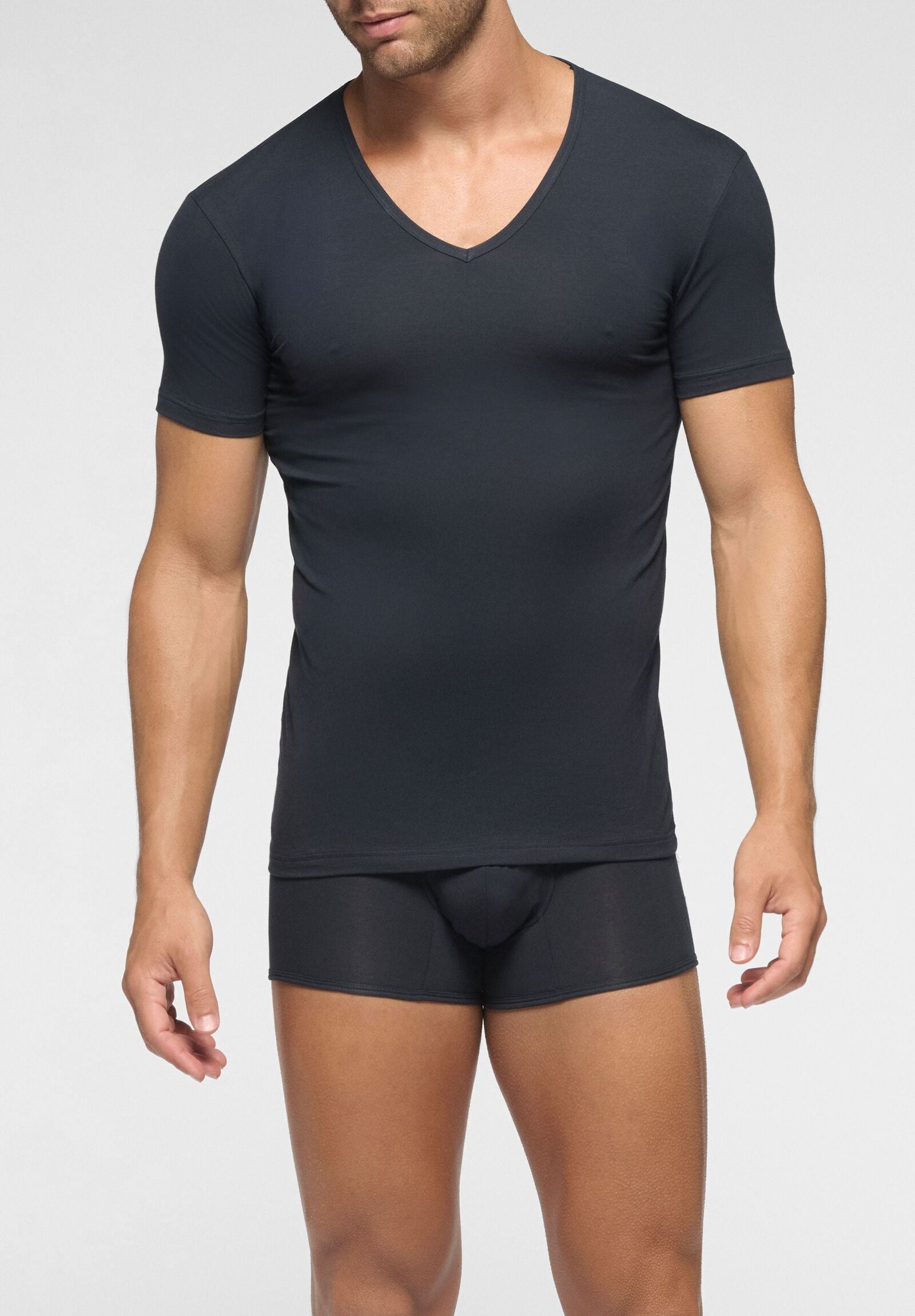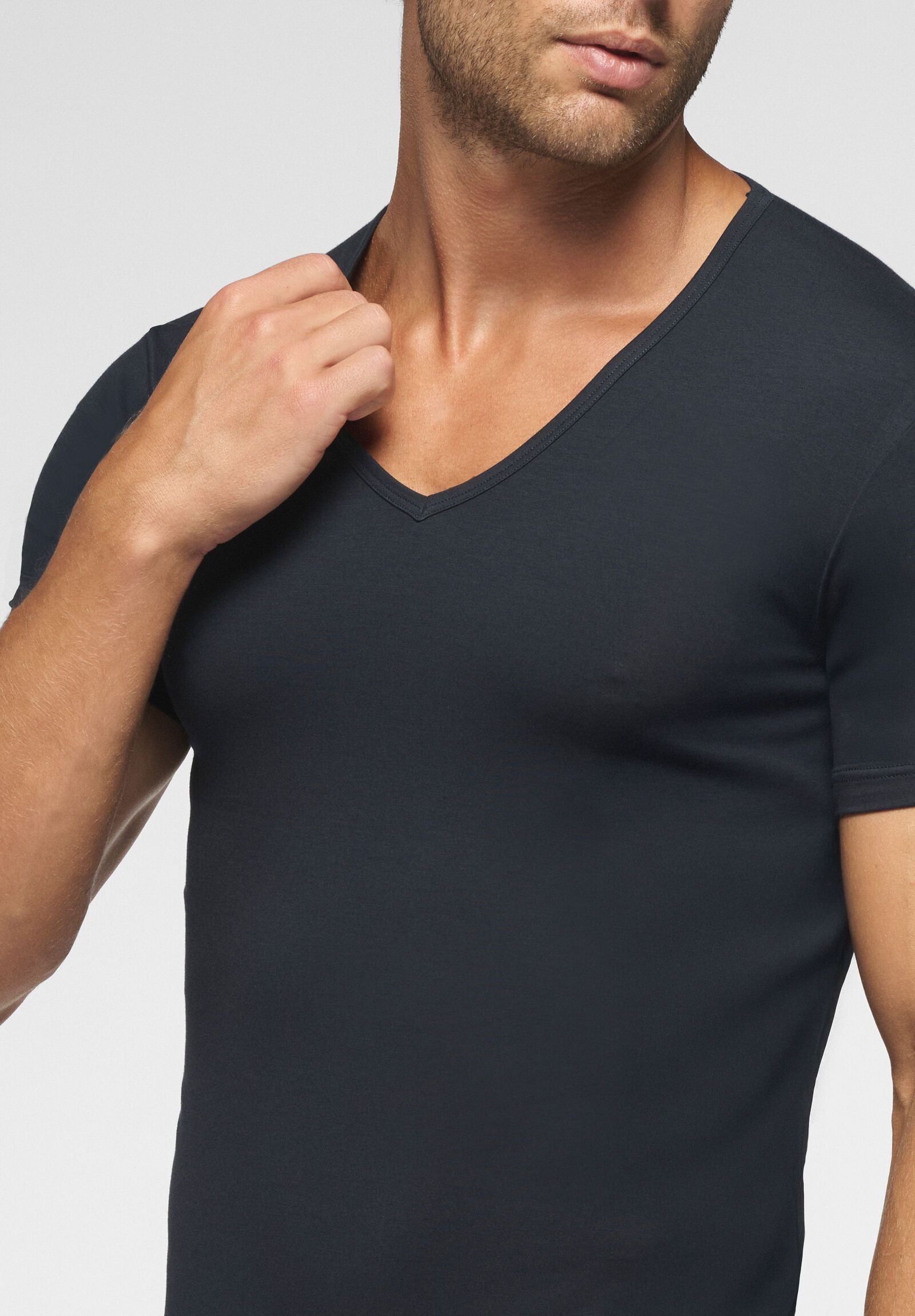 La qualità dei filati di cotone più freschi e sottili si unisce all’energia dell’elastan per dar vita ad una maglietta con scollo a V profondo dalla vestibilità avvolgente e perfetta in ogni occasione. Anche le cuciture ultrapiatte contribuiscono ad aumentare il comfort e il benessere di una maglia da indossare e dimenticare. Diventa invisibile sotto il secondo bottone della camicia.