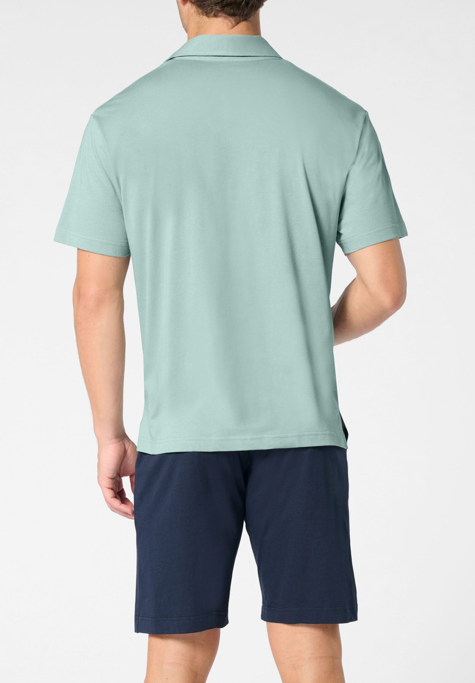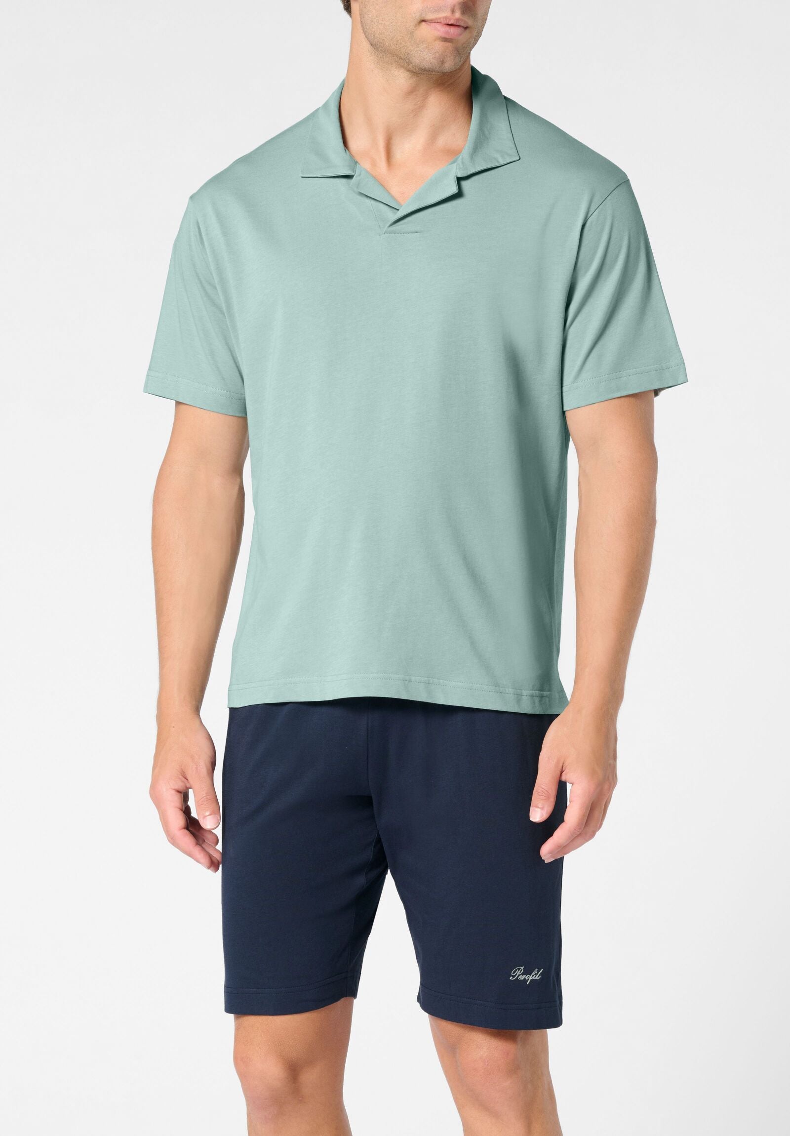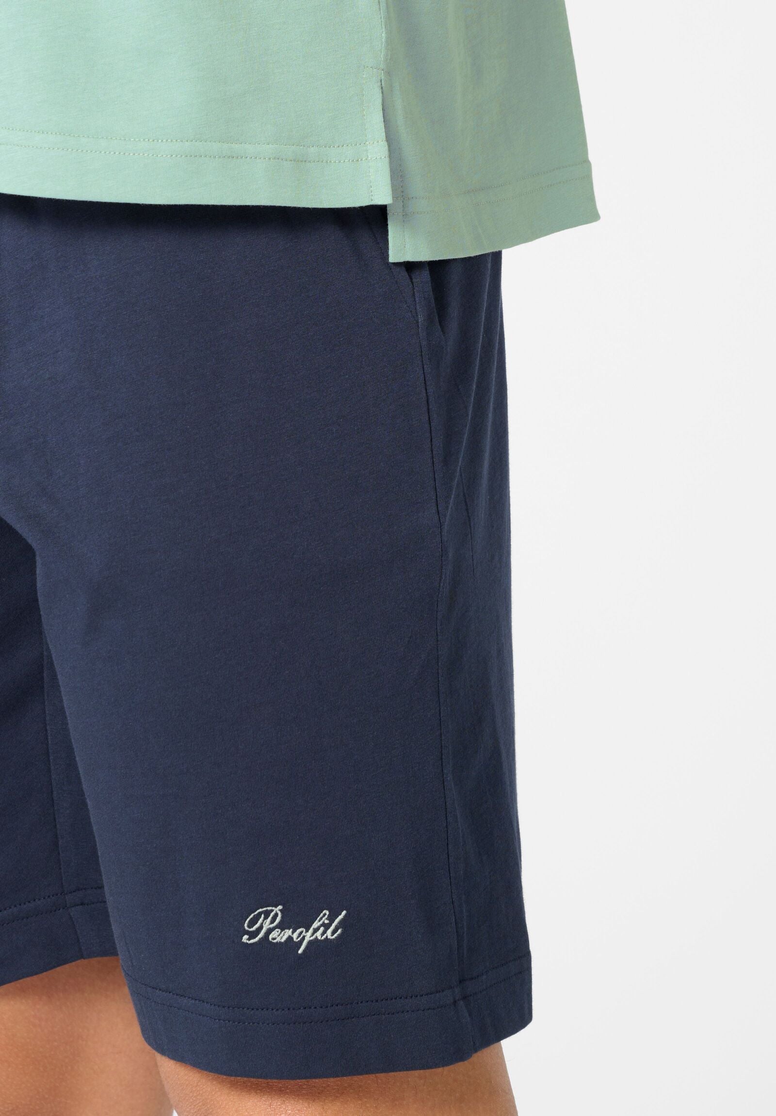 Il pigiama corto a polo Perofil combina eleganza e comfort grazie al tessuto in 100% jersey di cotone, morbido e traspirante. La polo tinta unita si abbina perfettamente ai bermuda in contrasto, arricchiti da tasche laterali e coulisse regolabile in vita per una vestibilità personalizzata. Un dettaglio raffinato è il ricamo logo sul bermuda, tono su tono con la polo, che aggiunge un tocco distintivo al capo. La vestibilità moderna rende questo pigiama ideale non solo per la notte, ma anche per i momenti di relax in casa. Il pigiama viene consegnato in un pratico sacchetto porta pigiama coordinato alla t-shirt, perfetto anche come idea regalo.