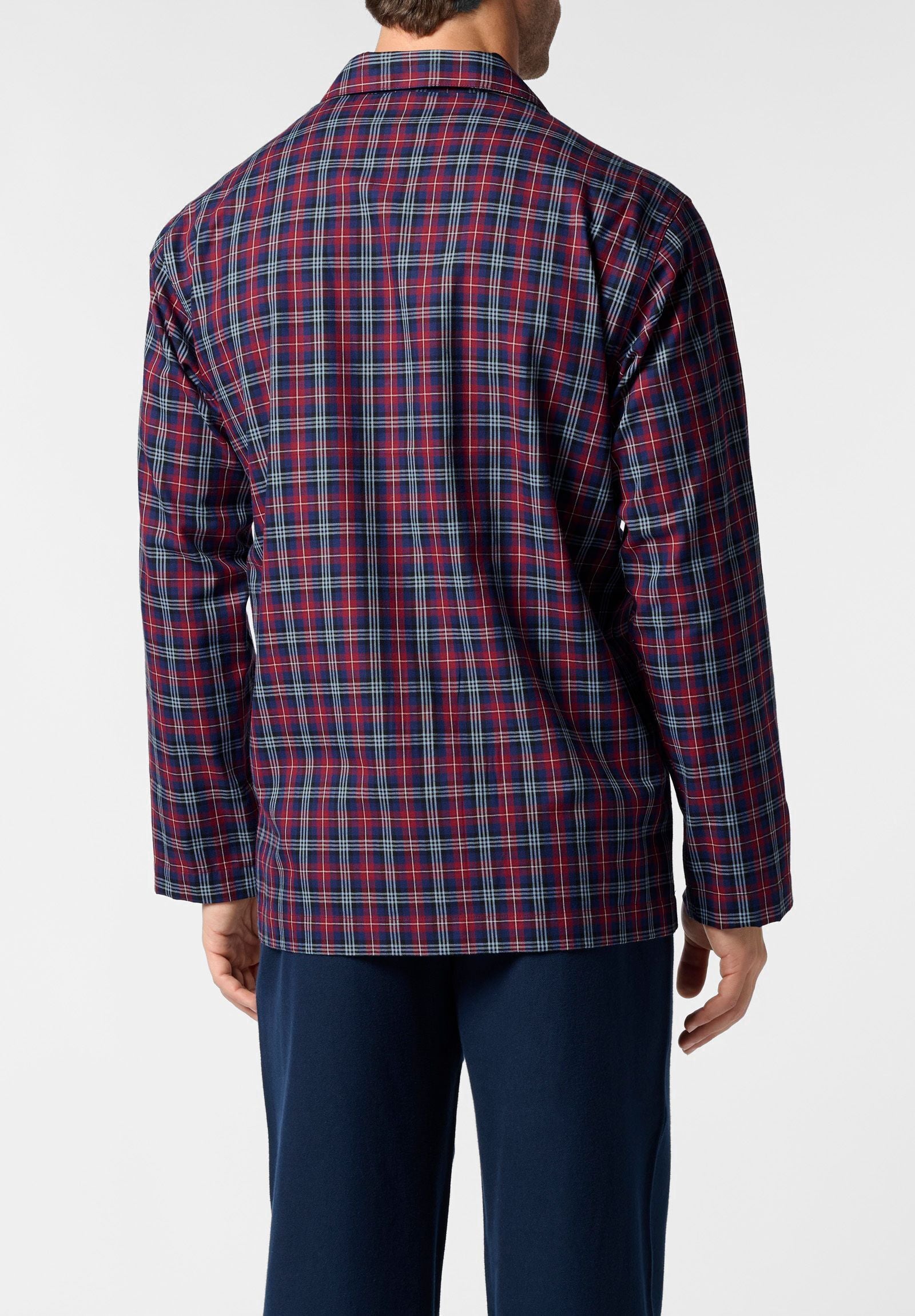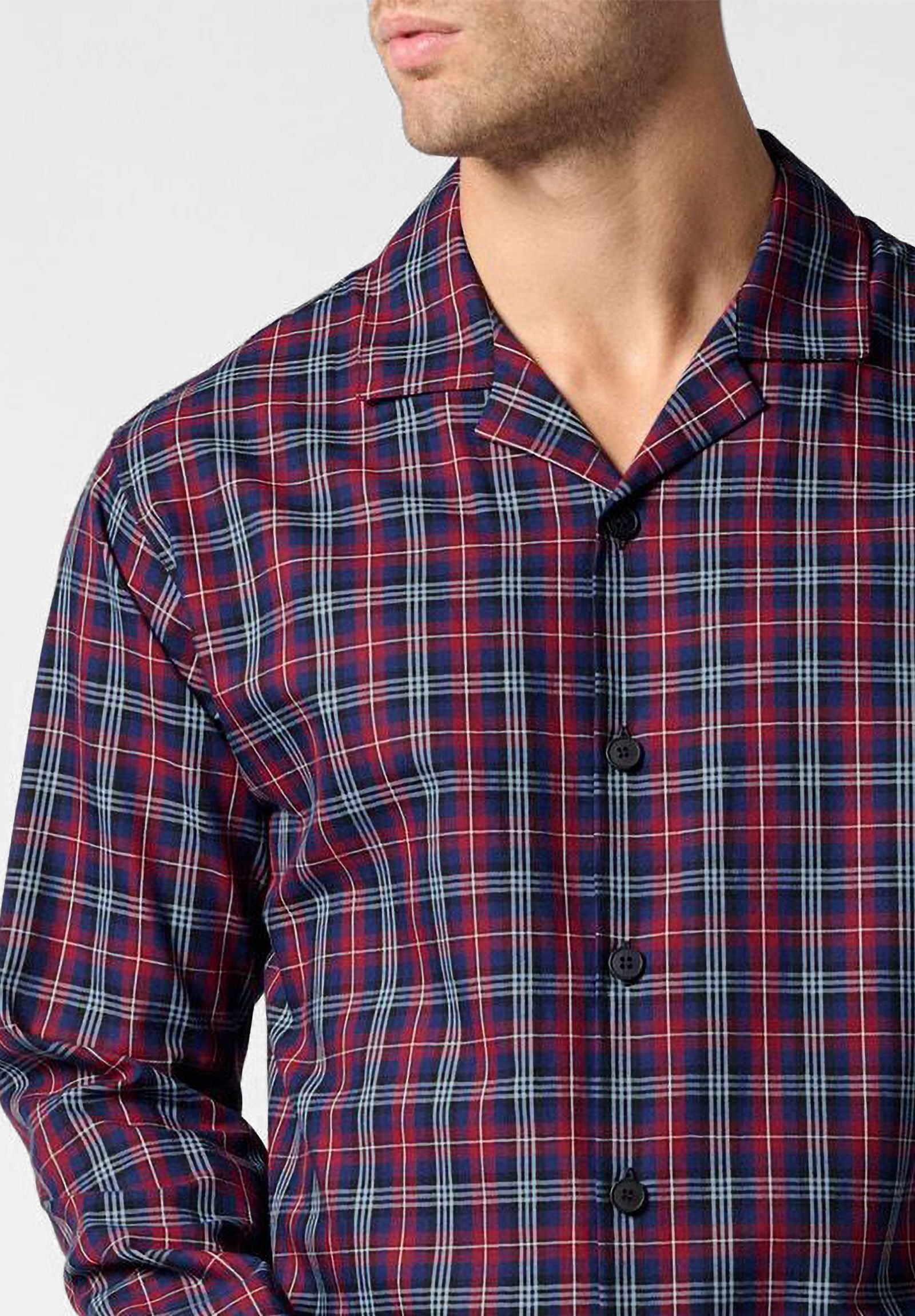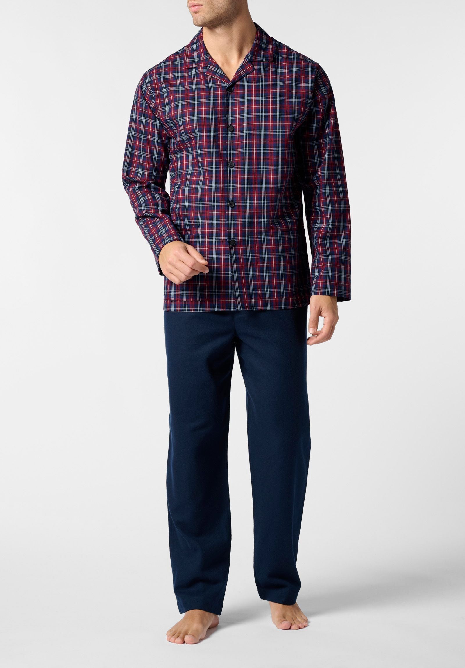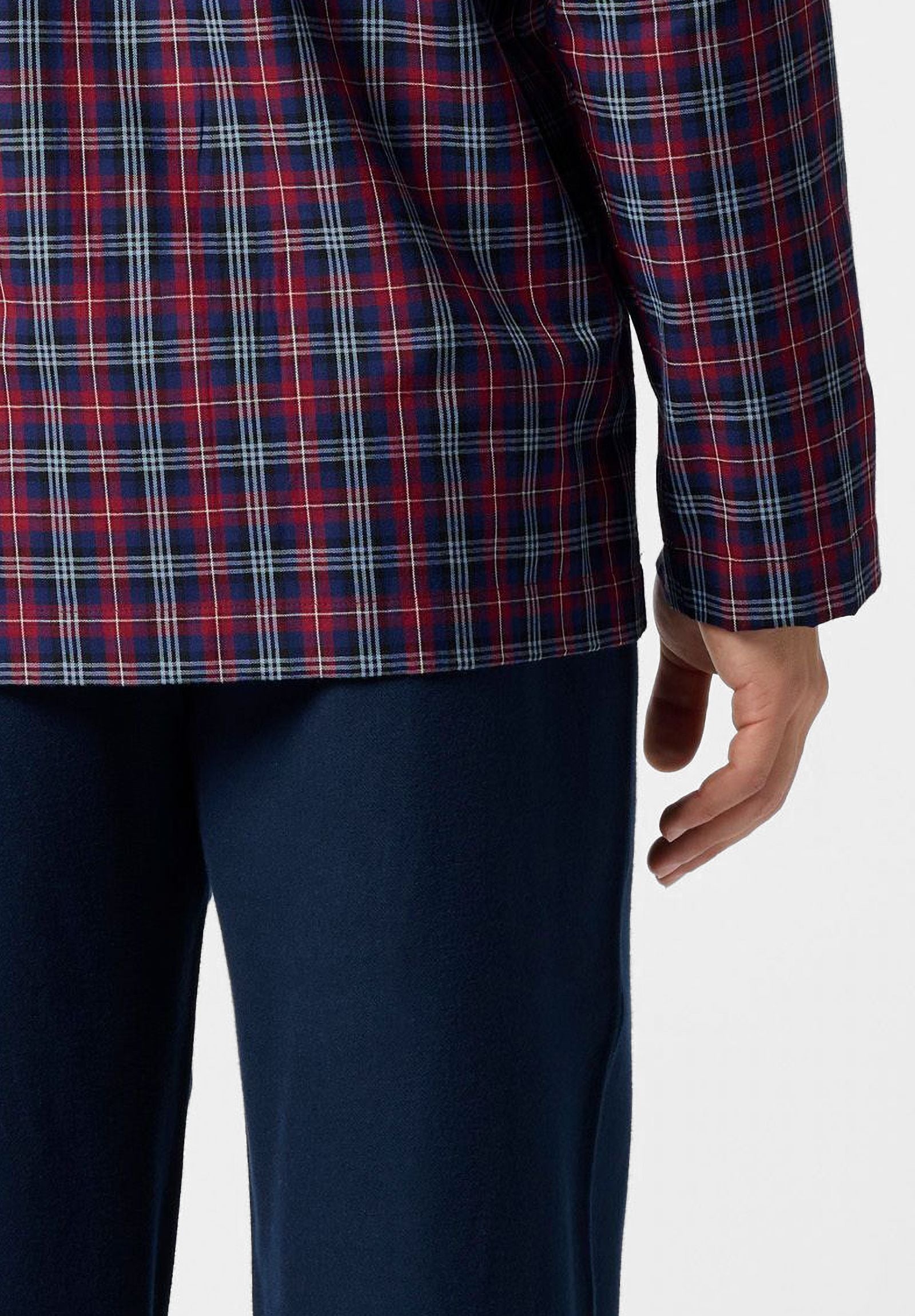 Pigiama lungo aperto con collo classico realizzato in soffice flanella di cotone, piacevole al tatto e ideale per la stagione fredda. La giacca presenta un design a quadri dal gusto intramontabile, abbottonatura frontale e taschino applicato. I pantaloni sono dotati di apertura con bottoni ed elastico in vita per il massimo comfort durante il riposo. Un modello perfetto per le serate invernali all’insegna del relax domestico. Confezionato in scatola.